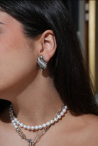These earrings are crafted with 18k gold plated brass and feature small zircon details, making them a perfect statement piece for any occasion. Despite their bold look, they are surprisingly lightweight and comfortable to wear. Upgrade your accessories for the new season with these elegant earrings.